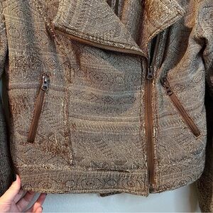 Women’s Free People brown tapestry patterned moto jacket size 8