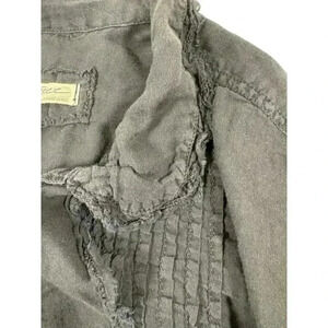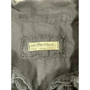 Women’s Free People sz M gray boho peasant top w/ buttons and collar-see damage
