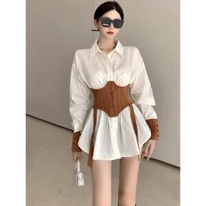 Women's French 2 in 1 Waistband Belt Shirt Dress (M)