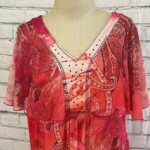 Women’s. French Bazaar. Orange, pink and cream long dress. Paisley. A little stretchy. Excellent condition. No stains/holes. Size XXL.