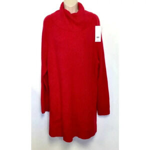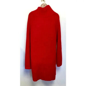 This is a new with tags and box, French Connection, Babysoft Katrina Roll Neck Dress in size XL. The dress is a bright red color and is made of a soft, ribbed knit fabric. It features a high neck, long sleeves, and a relaxed fit. The dress measures approximately 37 inches in length, 22 inches across the shoulders, and 32 inches across the bust. The dress is in excellent condition and has no visible imperfections.