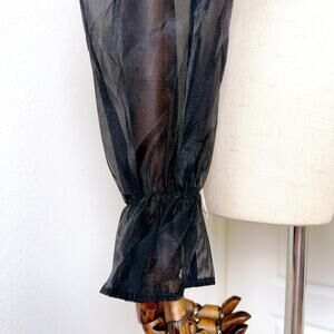 Discover timeless elegance with our Black Satin French Style Long Sleeve Crop Blouse. This exquisite piece seamlessly blends classic French fashion with modern design.