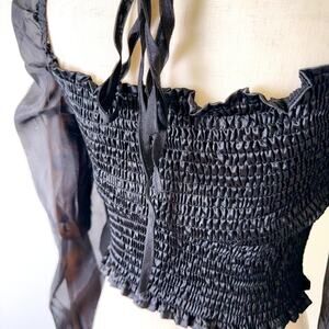 Discover timeless elegance with our Black Satin French Style Long Sleeve Crop Blouse. This exquisite piece seamlessly blends classic French fashion with modern design.