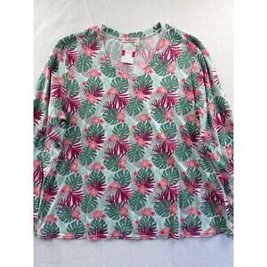 Women’s Fresh Produce Pink & Green Jungle Pattern Long Sleeve Sz 2X