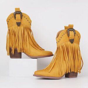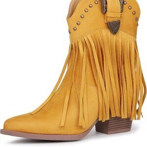 Women's Fringe Cowboy Cowgirl Boots Snip Toe Pull On Dress Western Ankle Bootie