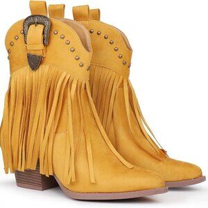 Chic Studded & Fringe Accents: Elevate your style with unique studded detailing and playful fringe accents. These fashionable embellishments add a touch of flair, capturing the essence of Western aesthetics and allowing you to express individuality in every step.
