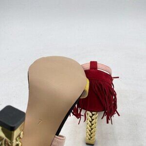 Women's Fringe Heels Ankle Strap Faux Suede Chunky Heel Shoes