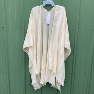 Material: 72% Polyester/22% Acrylic • Care: Machine washable • Country of Origin: Imported • Size: Model is 5’10” and is wearing a size S • Fit: Loose • Weight: Lightweight • Closure: Open front • Sleeves: Wide short sleeves • Pockets: None • Features: Stripe pattern; fringed edges; one size fits most