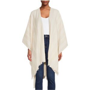 Women's Fringed Stripe Ruana Kimono Cardigan Wrap