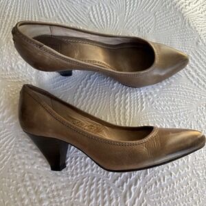 Womens Frye Regina Pump Taupe Stacked Heels Leather Size 8.5 M