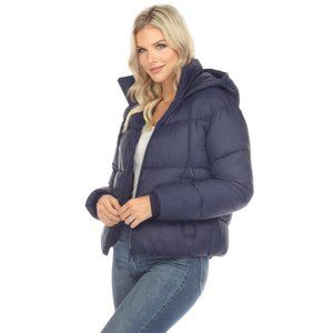 Women's Full Front Zip Hooded Bomber Puffer Jacket