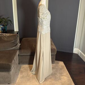 Women’s Full Length Gray Chiffon & Lace Appliqué Formal Dress Zip Back Size 10