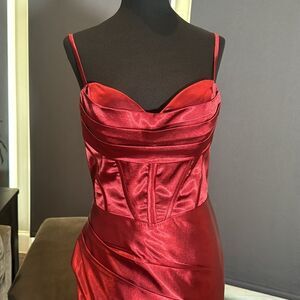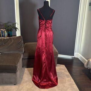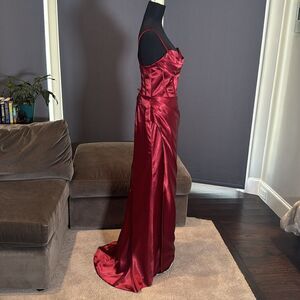 Women’s Full Length Satin Dress with Criss Cross Corset Back Straps and a front Leg Slit