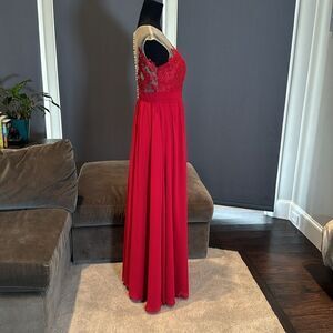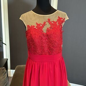 Women’s Full Length Red Chiffon & Lace Appliqué Formal Dress Zip Back Size 10