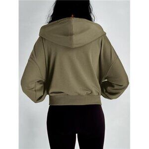Women's Full Zip-Up Cropped Hoodie Sweatshirt Casual Comfy Gym Jacket