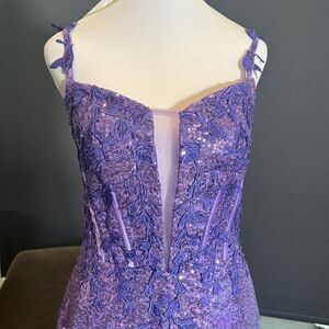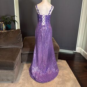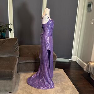 Women’s Fully Sequined Purple Mermaid Fit Prom Party Dress Leg Slit Size 4