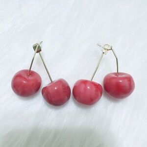 Women’s Fun Fruit Dangle Drop Earrings Cute 3D Pink Cherry Jewelry