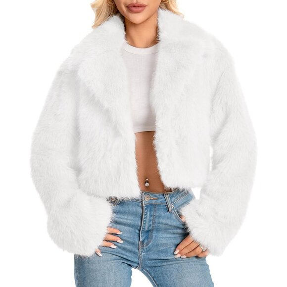 Women's Fur Coats Plus Size Cropped Faux Fuzzy Jacket Fluffy Fall Coat White