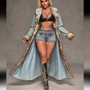 Women's Fur Patchwork Long Sleeve Simple Casual Denim Jacket