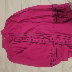 Women's Fusia Pink Embroidered Light Weight Linen Top Size Laidies XXL