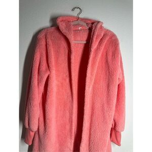 Women’s Fuzzy Pajamas Hooed Plush Jacket Pink Peach Size L