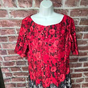 Women's GABBY SKYE Short Sleeves Roses Fit and Flare Dress Size 14