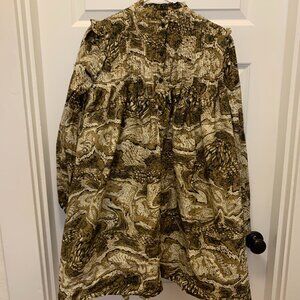 Women's GANNI Tiger's Eye Cotton Smocked Button Back Dress Mini Size 40 Large