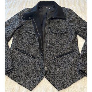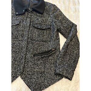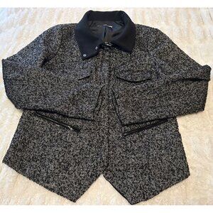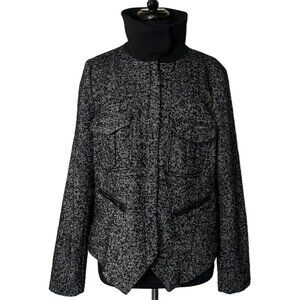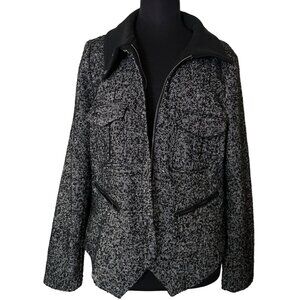 Women's GAP Black White Coat w/Zip Pockets Polyester Wool Blend Size L (READ)