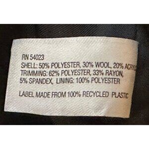 Shell – 50% Polyester, 30% Wool, 20% Acrylic