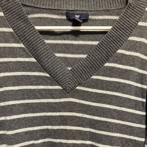 Women’s GAP Factory Grey Striped V-Neck Sweater Size Small