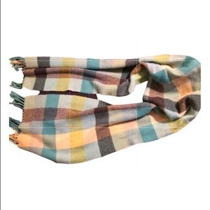 •Ladies turquoise, yellow, white, cream, gray & black checkered scarf