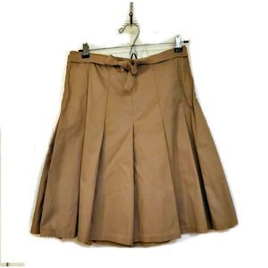 Women's GAP Stretch Khaki Pleated Midi Knee Length Skirt with Bow Sz 4 EUC
