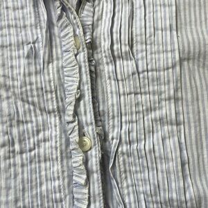 Women’s GAP blue and white striped button up shirt. Ruffled front. Size S