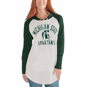 Women's G-III 4Her by Carl Banks White/Green Michigan State Spartans Size S Hooded with Drawstring Raglan Sleeve Long Kangaroo pocket