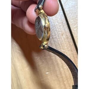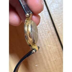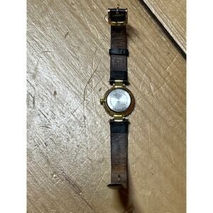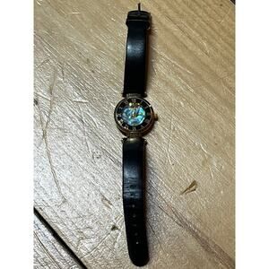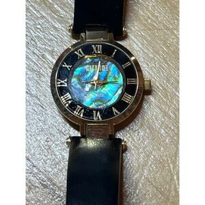 Women's GITANO Gold Tone Abalone Shell Dial Watch, Black Band. Roman numerals. Needs Battery.