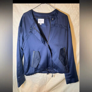 Womens GUESS Navy Blue Casual Jacket Sz Medium-large Fit Softshell Satiny Feel