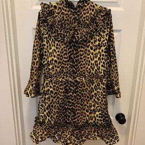 Women's Ganni Leopard Animal Print Cotton Mini Dress Size 40 L