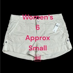 Women’s Gap 6 Small Shorts Chino Khakis Beige Bermuda Rolled Hem Snap Pocket NWT