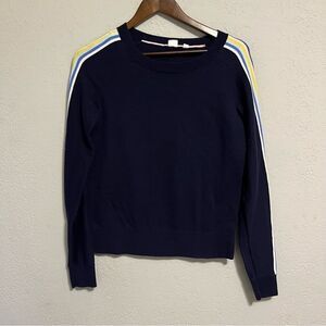 Women's Gap Blue Sweater with Pastel Stripes Down the Side