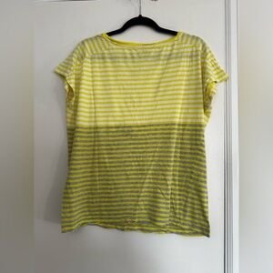 Women's Gap Cap Sleeve Medium Basic T Shirt Yellow White Grey Stripes.