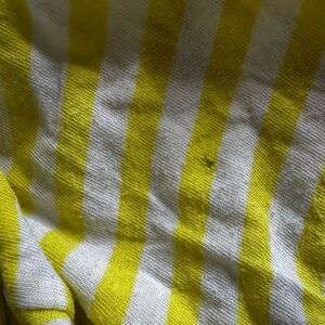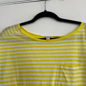 Women's Gap Cap Sleeve Medium Basic T Shirt Yellow White Grey Stripes. Flat front pocket. Small hole neat hem noted in photos. Otherwise in great condition. Light and airy, thin tee. Great for summer. Please see pictures for measurements.