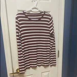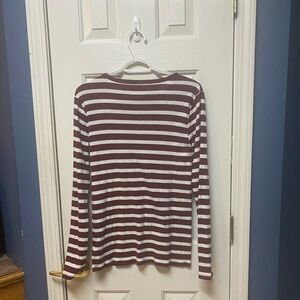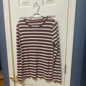Women's Gap Large Thermal Long Sleeve T-shirt Top Red White Stripes Stretches.