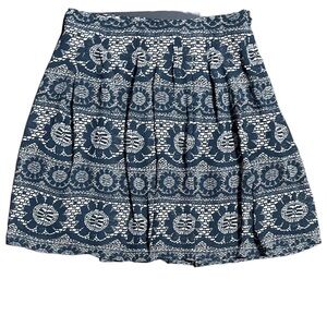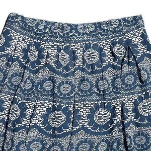 Women’s Gap Skirt Dark Blue and Cream Flower Lace Print Lined Pleated Size 1