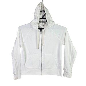 Womens Gap White Full Zip Hoodie Jacket Drawstring Cotton Polyester Blend Size L