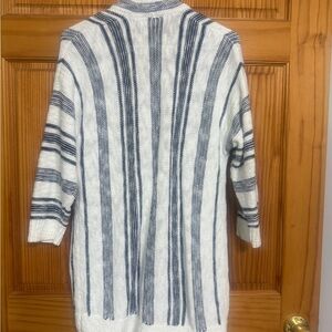 Women’s Gap navy blue and white vertical striped petite cardigan sweater