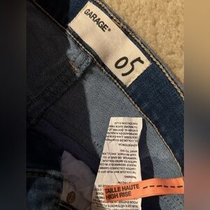 Women's Garage High Rise Denim Jeans Medium Wash size 5. Dark along the sides. Frayed bottoms. Smoke free home.