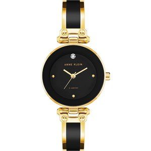 Mineral crystal lens; Glossy black dial with genuine diamond at 12; Gold-tone hands and markers