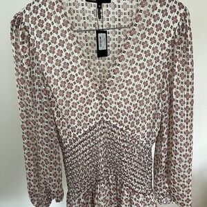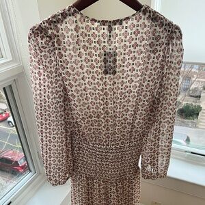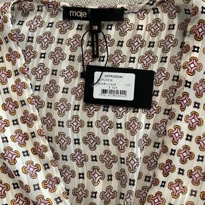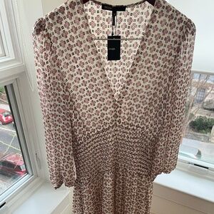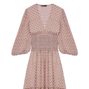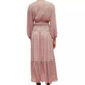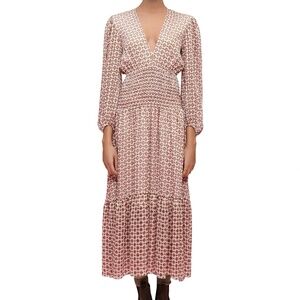 Decorated with a geometric motif, Maje's Ripege maxi dress features a plunging V-neck, long sleeves, and a cinched waist.