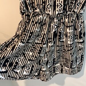 Super cute romper great for summer or fall occasions or casual wear. Light weight, very flattering, + good booty coverage!