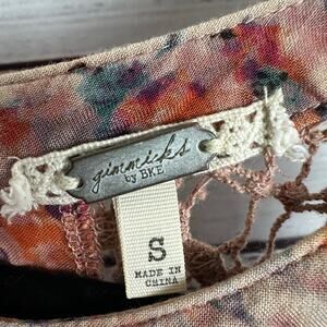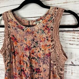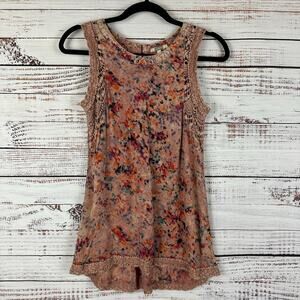 Womens Gimmicke BKE Blush Floral Watercolor Lace Boho Flowy Sleeveless Top S